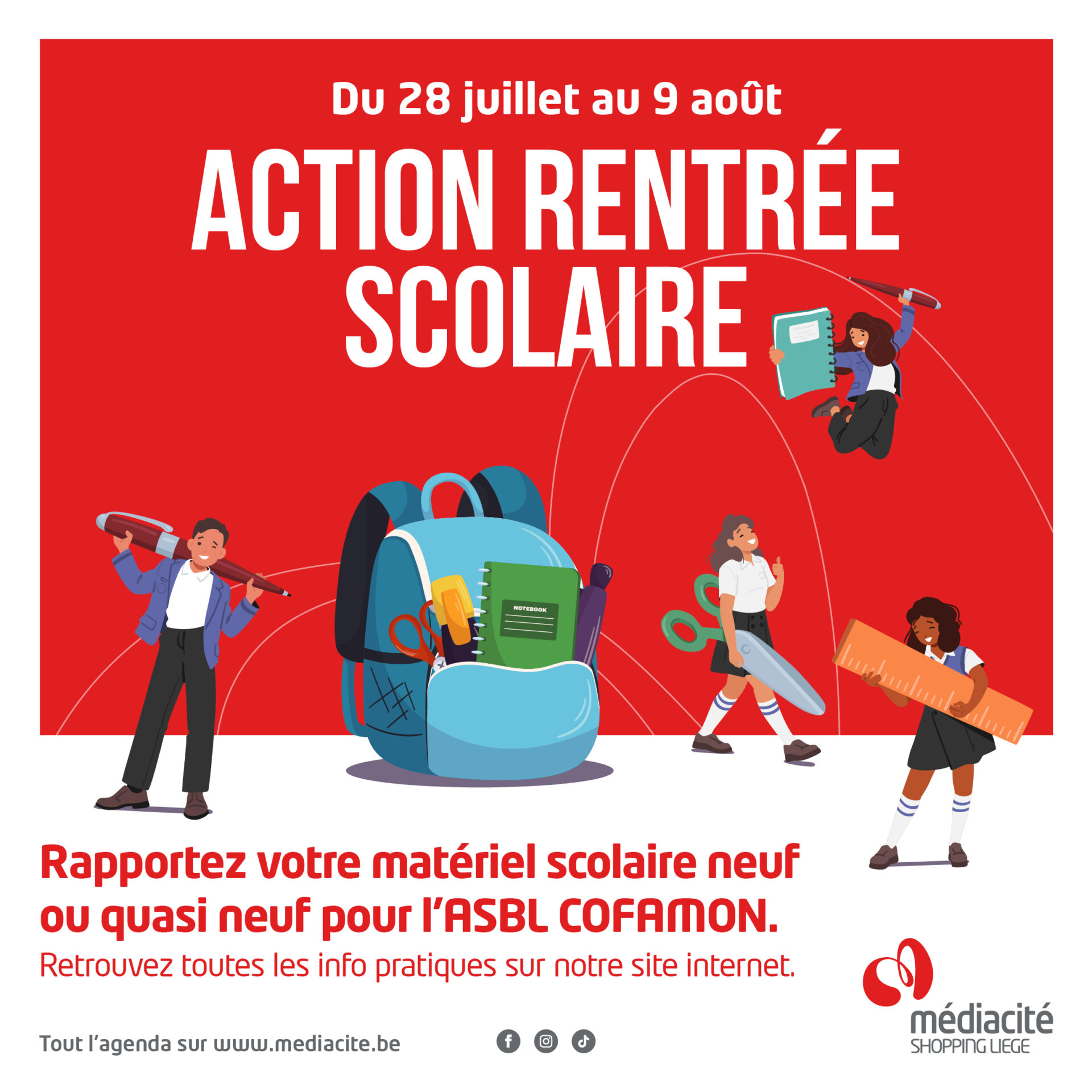 Cette année encore, Médiacité lance une grande collecte de matériel scolaire pour l’ASBL CoFaMon.